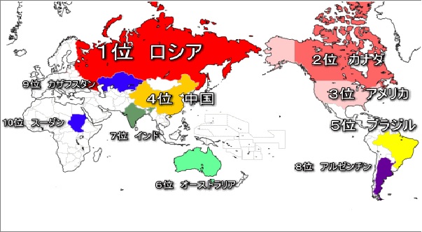 面積1位ロシアと2位カナダもまあ常識。