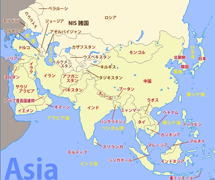 この記事では【アジア】地域を「東アジア」〔日本、中国、韓国、北朝鮮)、