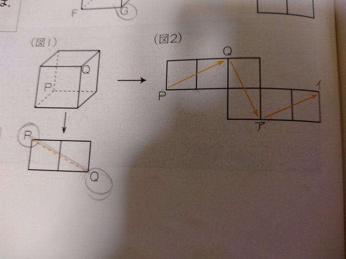 2 立方体の「最も遠い点」展開図の長方形(□2つ)の対角線にくる