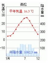 香川県高松市は瀬戸内海性気候で、少雨・温暖。