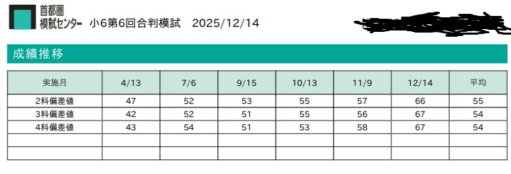 6年生の4月から教え始めた子 首都圏模試の偏差値42→67 6年生は偏差値