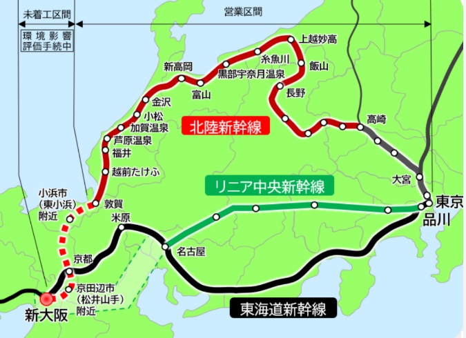 | 北陸新幹線 | 東京~大宮~高崎~敦賀(福井県) |