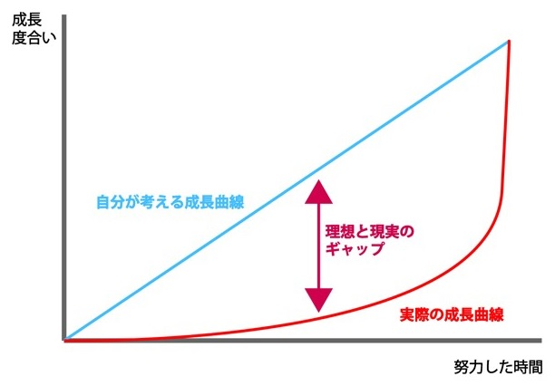 学習曲線は右肩上がりの直線ではなく、階段状に伸びるものです。